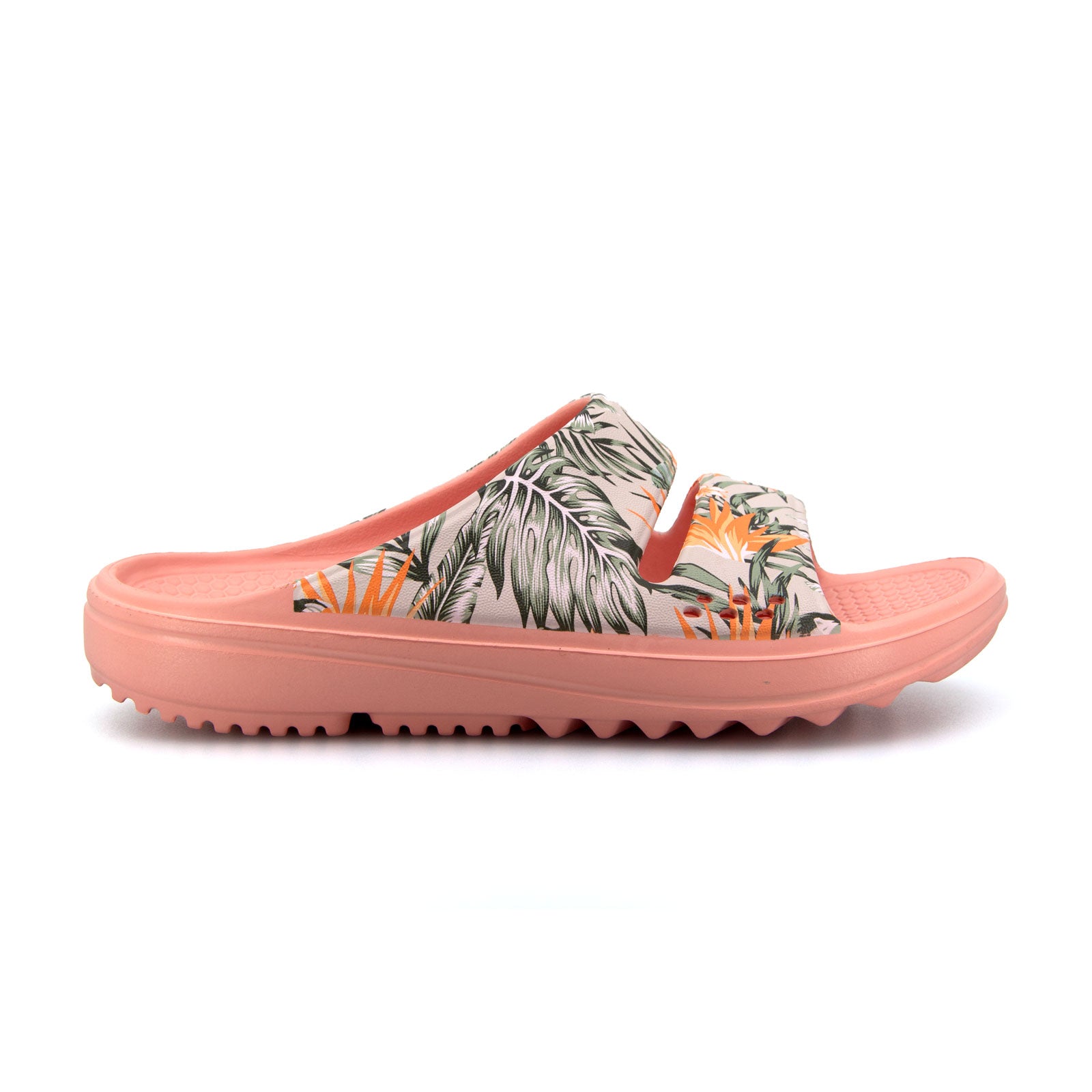 The Women's Island Slides in Coral Palm are expertly designed with 100% waterproof EVA construction, ensuring durability and easy maintenance in all conditions. Featuring a contoured arch support footbed, they provide exceptional comfort and support throughout the day. The snug upper straps secure the foot firmly, though those with a high instep may benefit from sizing up for an optimal fit. Combining lightness, flexibility, and softness, these slides exemplify the signature Clogees comfort for versatile, reliable wear.